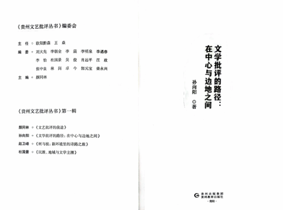 日前,我校孙向阳教授的新著作《文学批评的路径:在中心与边地之间》,由贵州教育出版社正式出版发行。该书获2022年贵州省出版传媒事业发展专项资金资助,它不仅是我校2021年硕士点和学科建设研究子项目“马克思主义文艺观视域下的地域文学研究”和“毛泽东《在延安文艺座谈会上的讲话》对列宁文学党性原则的中国化改造研究”的阶段性成果,也是我校区域文学与文化研究中心研究成果。
