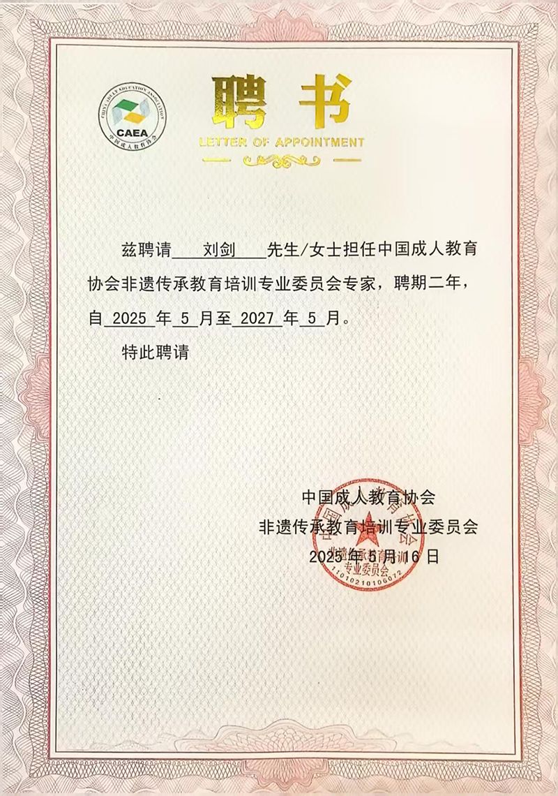 我校刘剑老师的聘书
