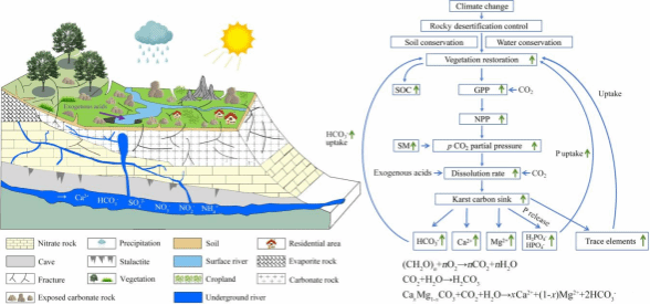 本项研究展现了我校在喀斯特生态恢复与岩溶-植被碳循环领域持续增强的科研能力与学术影响力。此后将结合多源遥感模拟反演与野外监测,构建基于空间像元尺度的外源酸作用下岩溶地质碳汇反演模拟,并耦合喀斯特区植被碳汇-土壤碳汇及脱气效应,深化喀斯特生态系统碳源汇全过程机制研究与碳中和系统评估,为喀斯特及全球生态治理提供科技理论技术支撑。