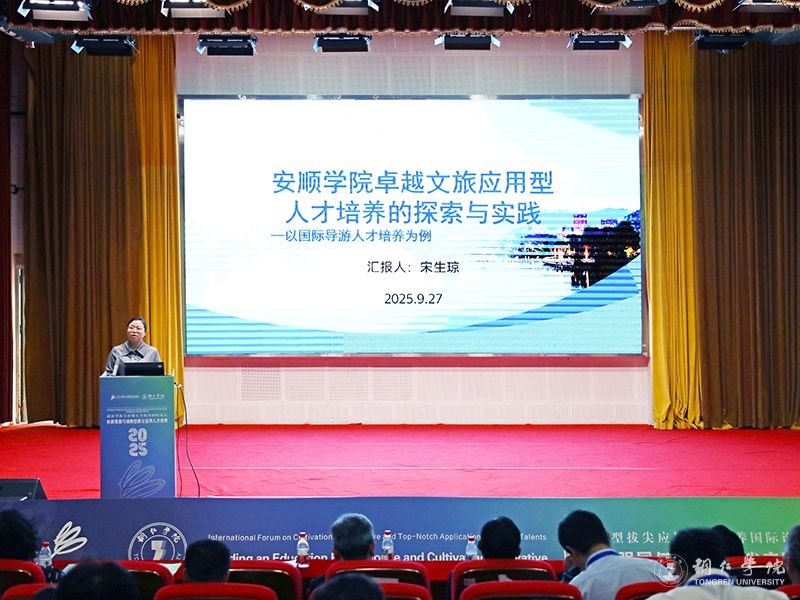 安顺学院教务处副处长宋生琼教授介绍了该校的发展历程,围绕国际导游人才培养模式的探索、实践、亮点、成效,分享了安顺学院卓越文旅应用型人才培养的探索与实践,表示要在文旅融合的时代浪潮中彰显特色价值,为区域经济社会发展与教育强国建设贡献自身力量。