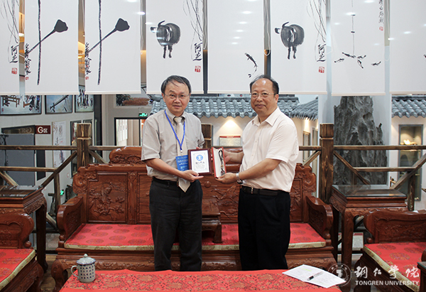 我校校长侯长林教授与台湾通识教育学会理事长庄荣辉教授交流并赠送纪念品