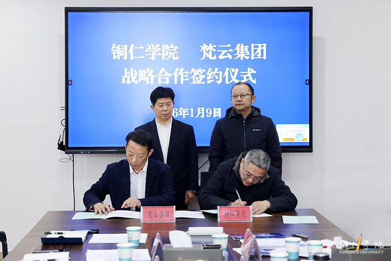 1月9日,我校与贵州梵云大数据集团有限公司战略合作协议签约仪式在梵云集团举行。梵云集团党委书记、董事长饶胜高梵云集团总经理陈进军,我校校长石维、副校长杨建出席签约仪式。